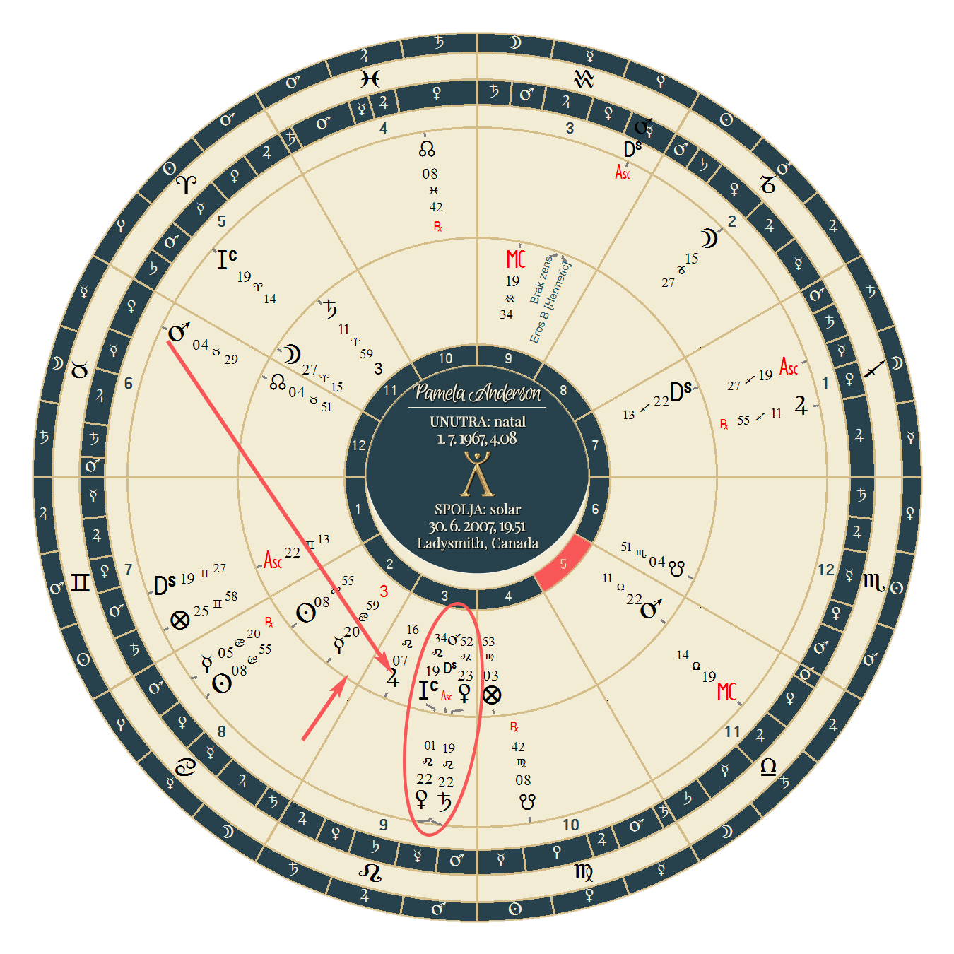 U toku 2007. se profekcijama aktivirao znak Vage i Mars u njemu. To znači da bi ono što se pokrenulo te godine moglo da nastavi da se razvija sve dok profekcija ne dođe do mesta Venere ili Saturna, kada bi trebalo da dobije svoj epilog. Ako tako posmatramo stvari, nije čudno da je baš te 2013. godine kada je profekcija došla na mesto Saturna, Pamela Anderson obnovila priču sa Rikom Salomonom.
