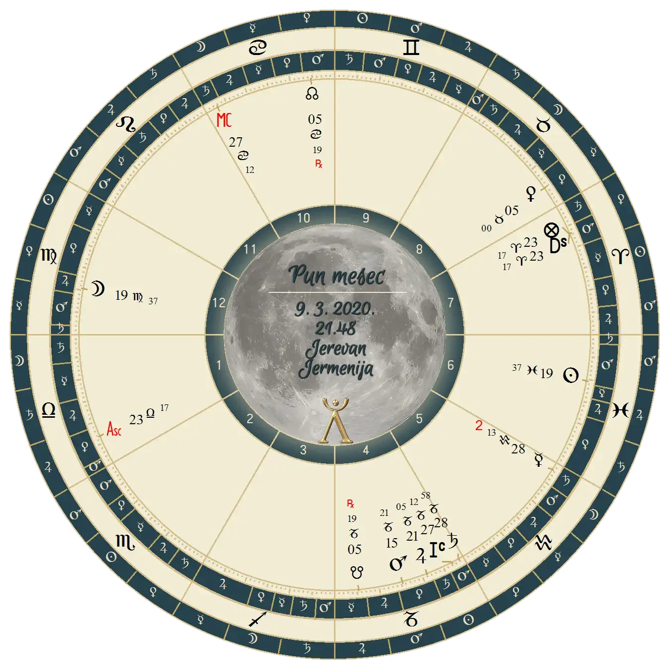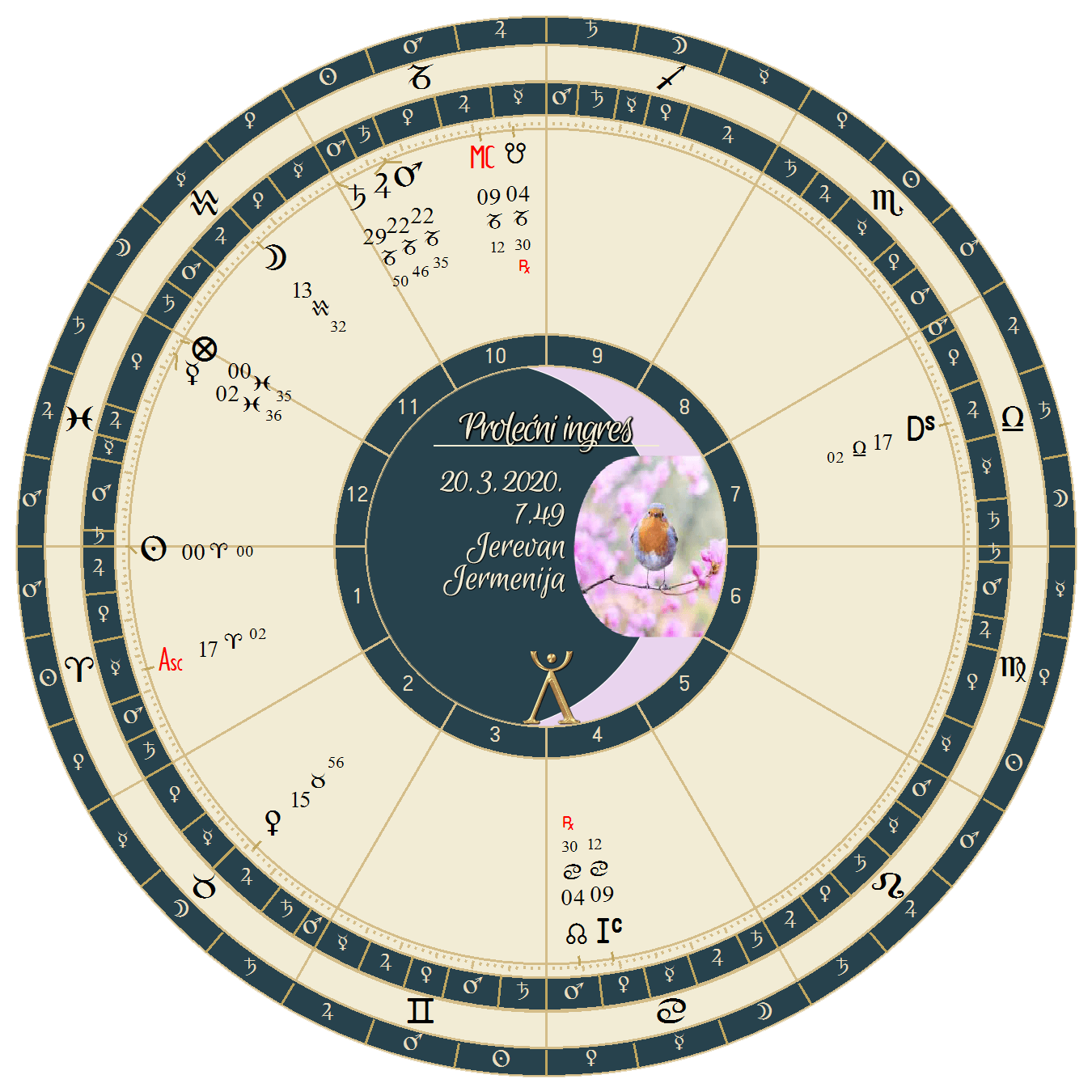 Najpre, u godišnjem horoskopu (prolećni ingres) možemo da primetimo da se u prvom polju, koje označava stanje nacije i države, našao znak Ovna, te da je vladar Mars na vrhu neba u konjunkciji sa Jupiterom i Saturnom. S obzirom da je Mars ove godine retrogradan, 6 meseci se zadržava u Ovnu i tako vrši pritisak na sva pitanja prve kuće.