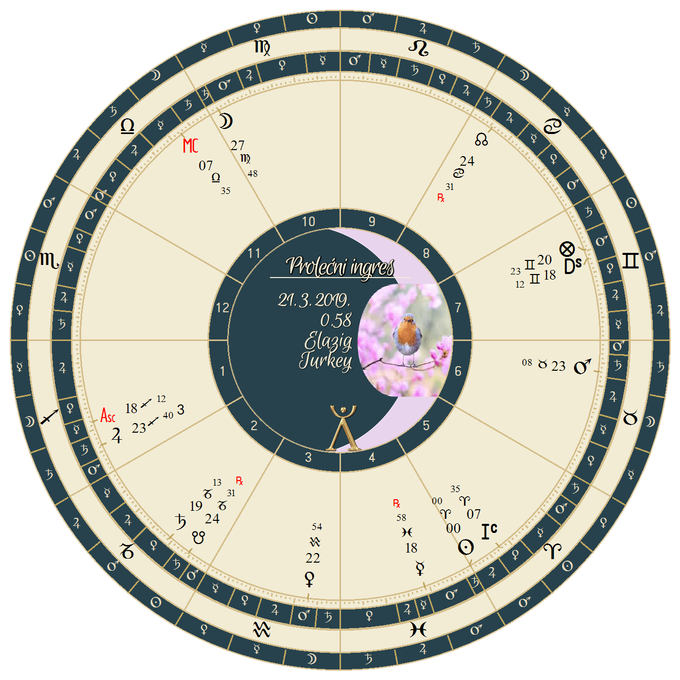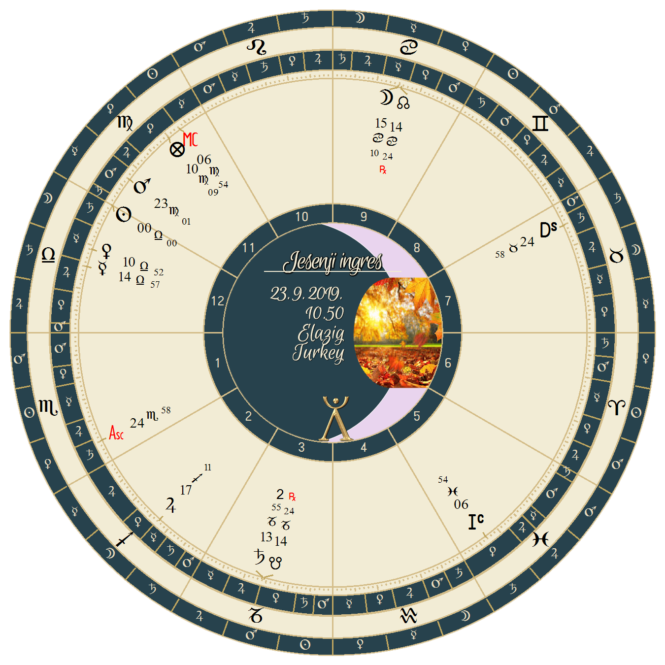Još jedna zanimljivost je da je u horoskopu relevantnog jesenjeg ingresa Mars bio u Devici, relativno blizu stepena ascendenta koji vidimo u horoskopu događaja.
